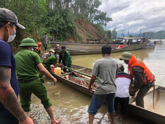 Nạn nhân tử nạn được đưa khỏi khu vực sạt lở bằng đường thủy
