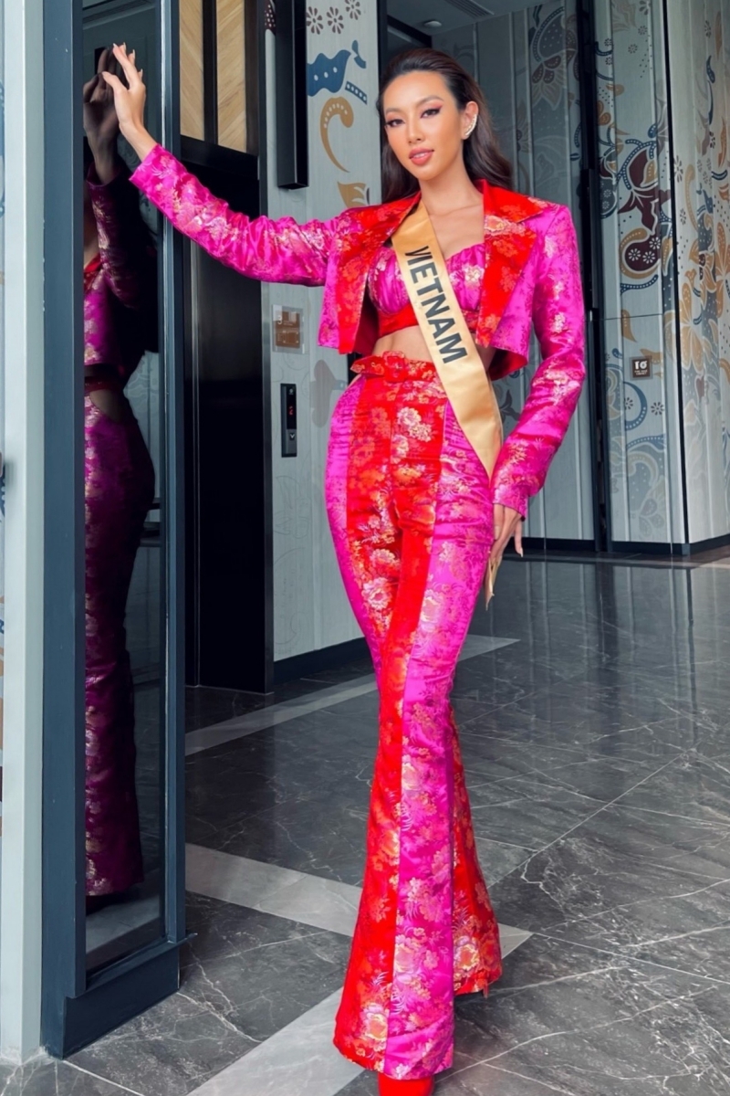 Mỗi ngày, cô thay vài bộ trang phục cho từng hoạt động. Trên trang cá nhân, Miss Grand Thailand 2020 - Nam Chantarapadit - đăng hình riêng của Thùy Tiên và bày tỏ yêu thích gu thời trang của người đẹp Việt khi nhìn thấy cô trong mẫu váy sequins màu tím nhạt.
