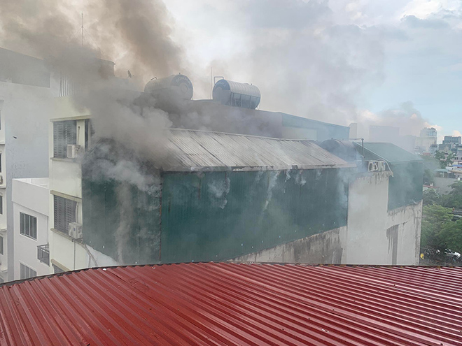 Sau đó, công an đã điều phương tiện chữa cháy xuống hiện trường và dùng xe thang đưa lực lượng chữa cháy lên khu vực tầng thượng của ngôi nhà, tháo dỡ các bức tường ngăn để tiếp cận khu vực cháy.