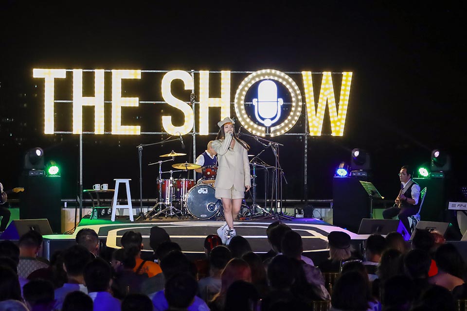 Ca sĩ Orange cùng các khán giả tưởng niệm ca sĩ Phạm Chí Thành trên sân khấu đêm nhạc “The show Vietnam”.