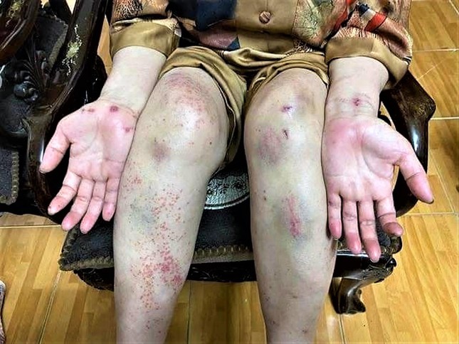 Thân thể bà Liên đầy vết trầy xước, bầm dập và chi chít vết muỗi, côn trùng cắn