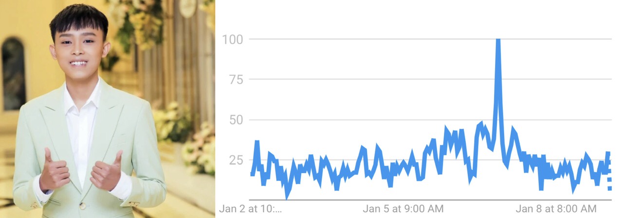 Từ khóa “Lều Phương Anh” chạm mốc 100 nghìn lượt tìm kiếm trên Google vào ngày 5.1.2022, với các từ khóa liên quan: “Lều Phương Anh là ai”, “ca sĩ Lều Phương Anh”, “Lều Phương Anh Vietnam Idol”, “Phương Anh Idol”, “Lều Phương Anh mang thai”…