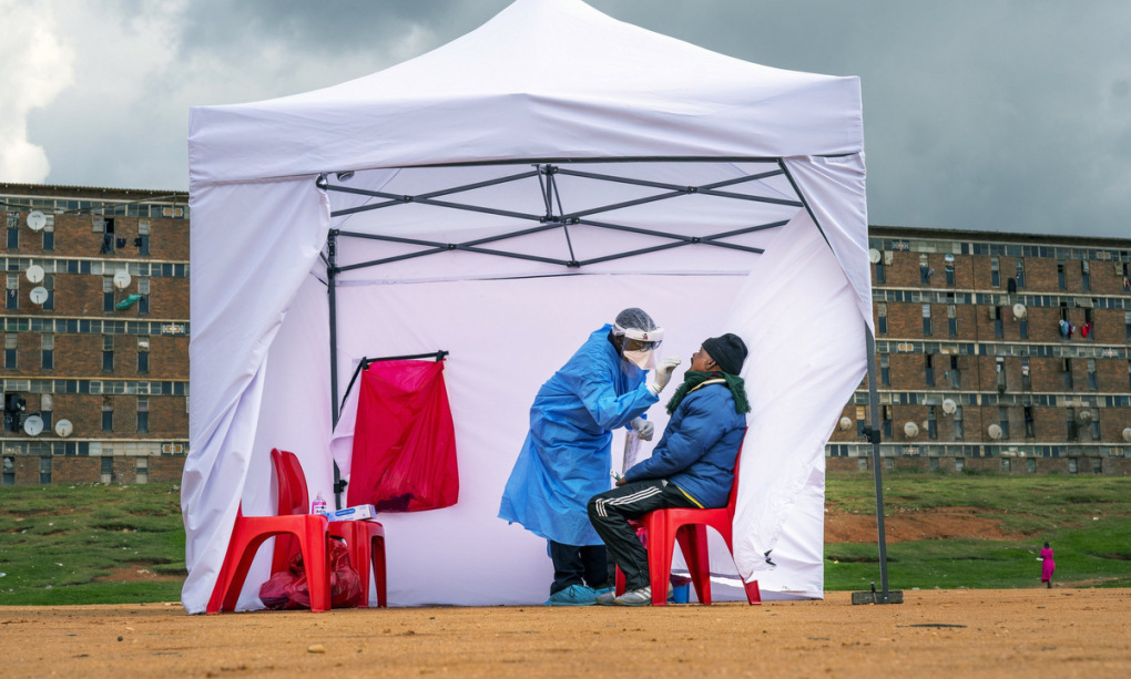 Nhân viên y tế lấy mẫu xét nghiệm cho người dân ở Johannesburg, Nam Phi, hồi năm 2020. Ảnh: AP.