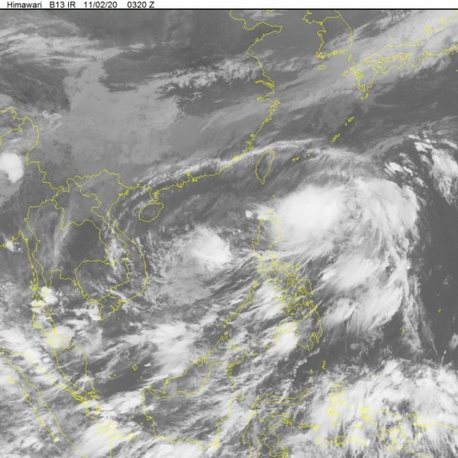 Dự báo khi tiến vào quàn đảo Hoàng Sa, bão Goni giảm xuống còn cấp 8, giật cấp 10 (ảnh chụp vệ tinh sáng 2/11)