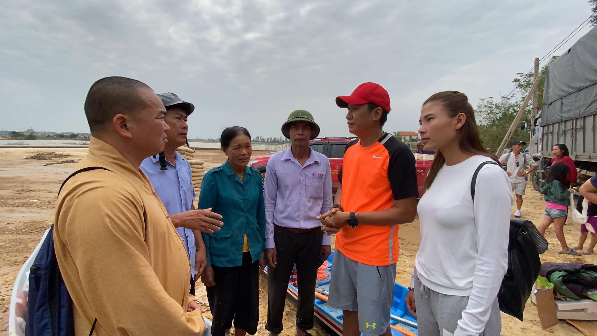 Thuý Diễm trong chuyến cứu trợ vùng lũ miền Trung.