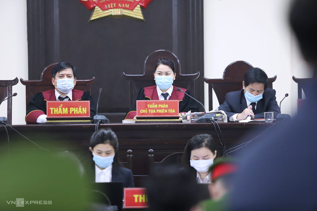HĐXX thẩm vấn các bị cáo. Ảnh: Đức Hùng