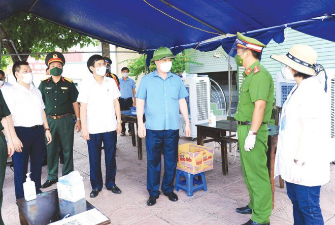 Bí thư Thành ủy Hà Nội Đinh Tiến Dũng kiểm tra công tác phòng, chống dịch Covid-19 trên địa bàn huyện Quốc Oai - Ảnh: Viết Thành