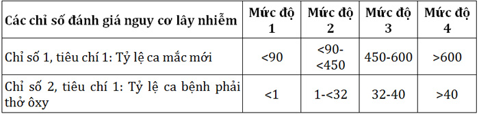Sau đó kết hợp với chỉ số 1 và 2 của tiêu chí 2, nếu không đạt mức tối thiểu thì phải nâng mức độ lây nhiễm lên một mức độ (trừ trường hợp đang ở mức độ 4).