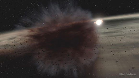 Hiện tại, mảnh vỡ của các hạt giống hành tinh này vẫn đang tạo thành một đám mây bụi lớn và trong quá trình quan sát của Spizer, nó đi qua phía trước ngôi sao, tạo ra hình ảnh như một bóng ma mờ đục, không rõ hình thù.