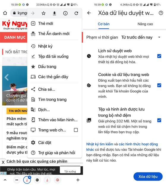 Xóa dữ liệu duyệt web trên Google Chrome. Ảnh: MINH HOÀNG