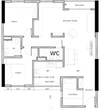 Minh họa vị trí nhà vệ sinh nằm ở trung cung