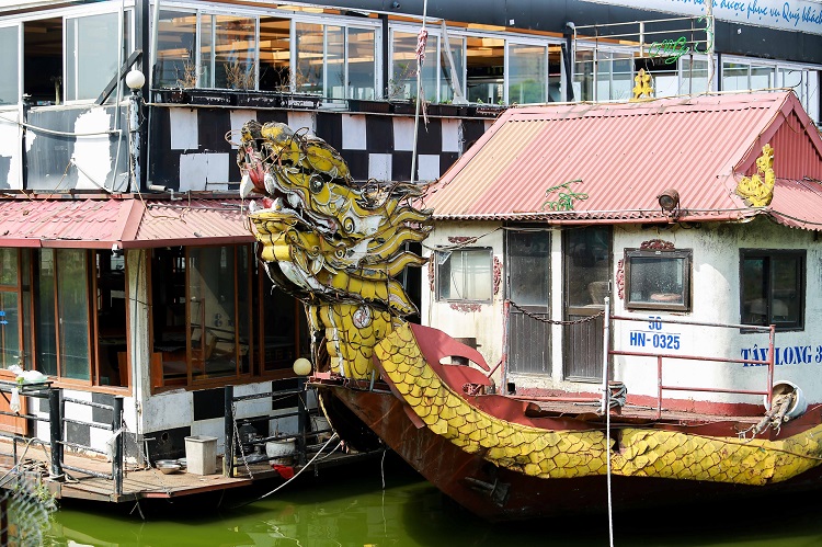 Các du thuyền cao từ 2 – 3 tầng, neo đậu chiếm diện tích lớn trên mặt hồ Tây. Theo thời gian, những con tàu này xuống cấp trầm trọng tưởng như bãi sắt vụn giữa mặt hồ, không chỉ gây mất cảnh quan thiên nhiên mà còn ảnh hưởng trực tiếp tới nguồn nước.