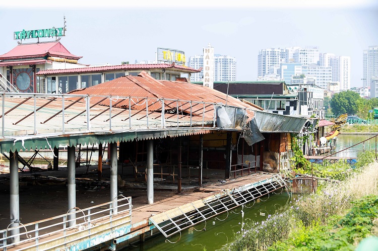 Một số hình ảnh “nghĩa địa” du thuyền, nhà hàng nổi nằm vật vờ trên mặt hồ Tây:
