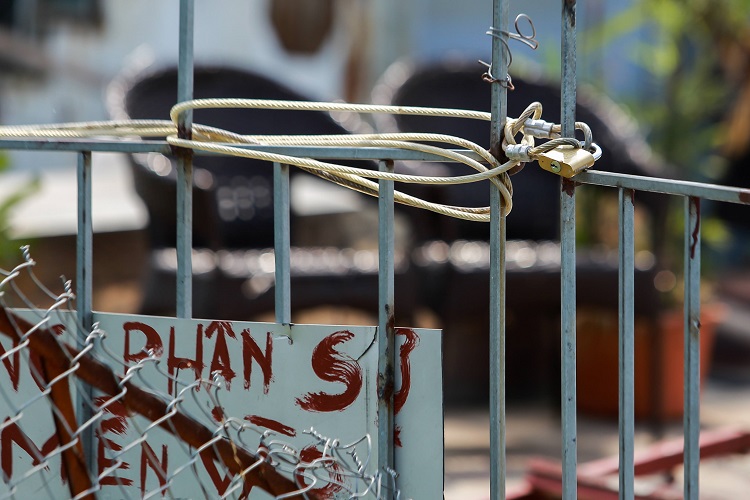 Bên ngoài, các lối dẫn vào du thuyền đều bị khóa và treo biển cấm vào.
