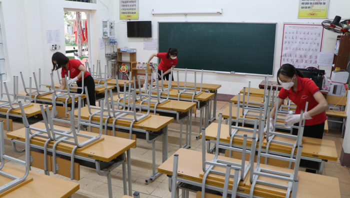 Sau khi có thông báo học sinh đi học lại, ngay trong ngày 12/11, các trường học đã chủ động tổng vệ sinh trường lớp, khử khuẩn, chuẩn bị đầy đủ cơ sở vật chất, trang thiết bị y tế, xây dựng kế hoạch giảng dạy, bảo đảm điều kiện sẵn sàng đón học sinh.