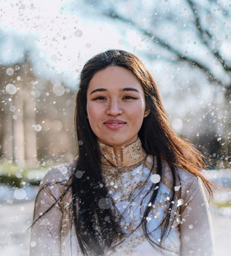 Bella Hoang biểu diễn trong chương trình văn hóa hàng năm của Hội sinh viên Việt Nam tại Đại học Brown, tháng 3/2020. Ảnh: Andrew Ton