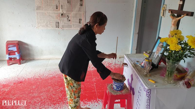 “Sơn đỏ làm ướt bẩn hết áo quần, nệm và xe cộ..., cả buồng chuối mới mang về để ngoài hiên cũng loang lổ sơn. Gia đình quá khổ, những người tới đòi nợ không đưa ra một giấy tờ gì để thể hiện em tôi nợ. Vợ con em tôi cũng đã rời đi vì hoảng loạn. Căn nhà trống không chỉ còn di ảnh mà họ cũng không tha” – người phụ nữ buồn bã.