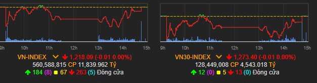Kết thúc phiên giao dịch ngày 29/6, Vn-Index giảm 0,01 điểm (-0%) còn 1.218,09 điểm. HNX-Index giảm 1,52 điểm (-0,54%) còn 282,35 điểm. UPCoM-Index giảm 0,13 điểm (-0,24%) đạt 88,88 điểm.