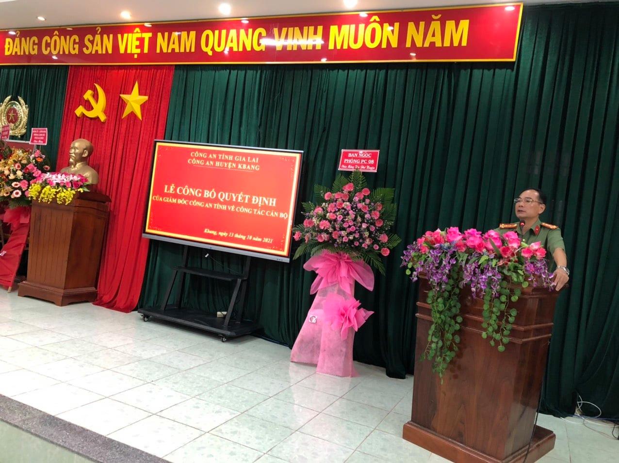 Ngày 13/10/2021, Công an huyện Kbang đã tổ chức Lễ công bố quyết định của Giám đốc Công an tỉnh về công tác tổ chức cán bộ. Đồng chí Đại tá tiến sĩ Phạm Hữu Trường – Phó Bí thư Đảng ủy, Phó Giám đốc Công an tỉnh, chủ trì buổi lễ.