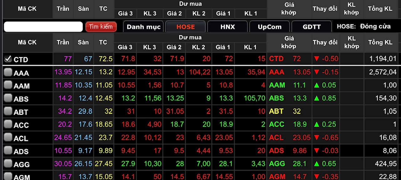 Chốt phiên, CTD giảm 0,69% giá trị về mốc 72.000 đồng/cổ phiếu.