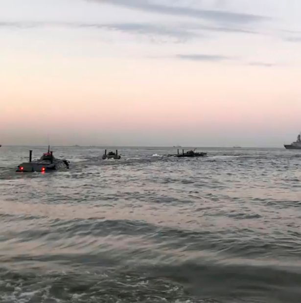 Ước tính có khoảng 30 tàu chiến, tàu hậu cần và xe bọc thép lội nước BTR-80 tham gia vào cuộc diễn tập.