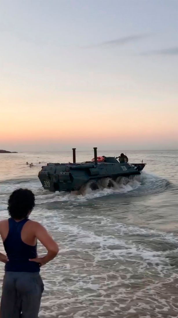 Đang tắm nắng, du khách hoảng hồn thấy xe bọc thép Nga từ dưới biển ngoi lên