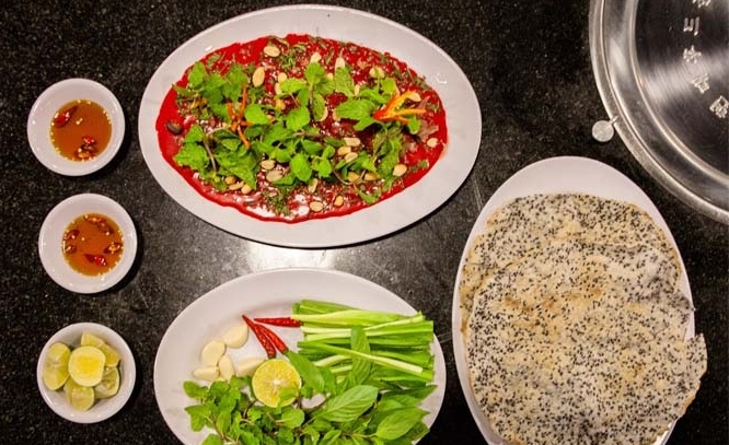 Đến với Dê Núi Ninh Bình – Đặc sản Dê Thắng Mập thực khách không thể cưỡng nổi món Dê quay da dòn, mềm ngọt ăn kèm với rau rừng và nước chấm đặc trưng của quán.
