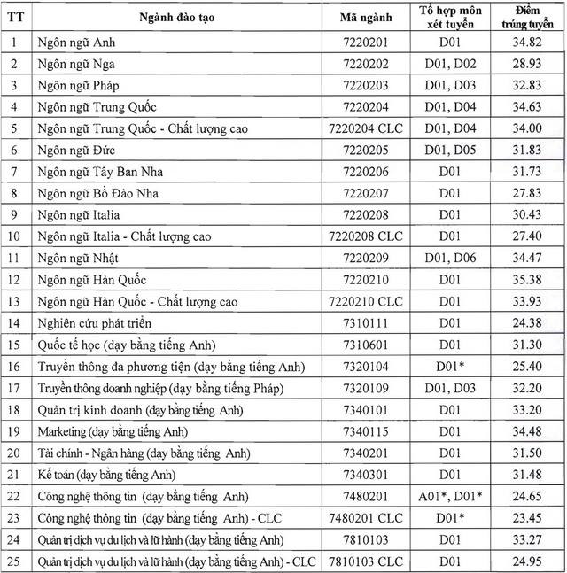 Ngày 5/10, trường ĐH Hà Nội công bố mức điểm chuẩn, theo đó, điểm chuẩn dao động từ 23,45 - 35,38.