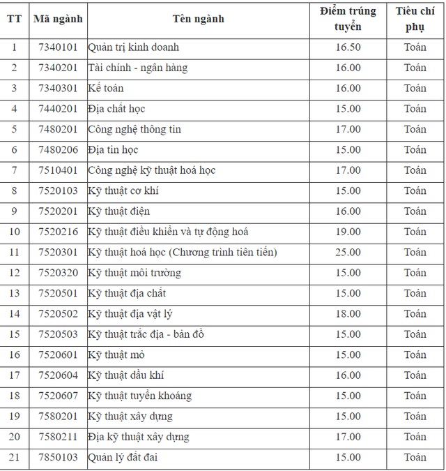 Điểm chuẩn Trường Đại học Mỏ - Địa chất năm 2020 như sau: