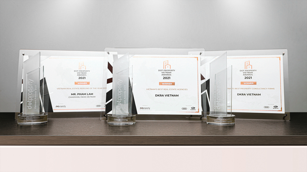 DKRA Vietnam lập hat-trick giải thưởng về nhà phân phối, đơn vị tư vấn phát triển dự án và nhân vật của năm tại Dot Property Vietnam Awards 2021.