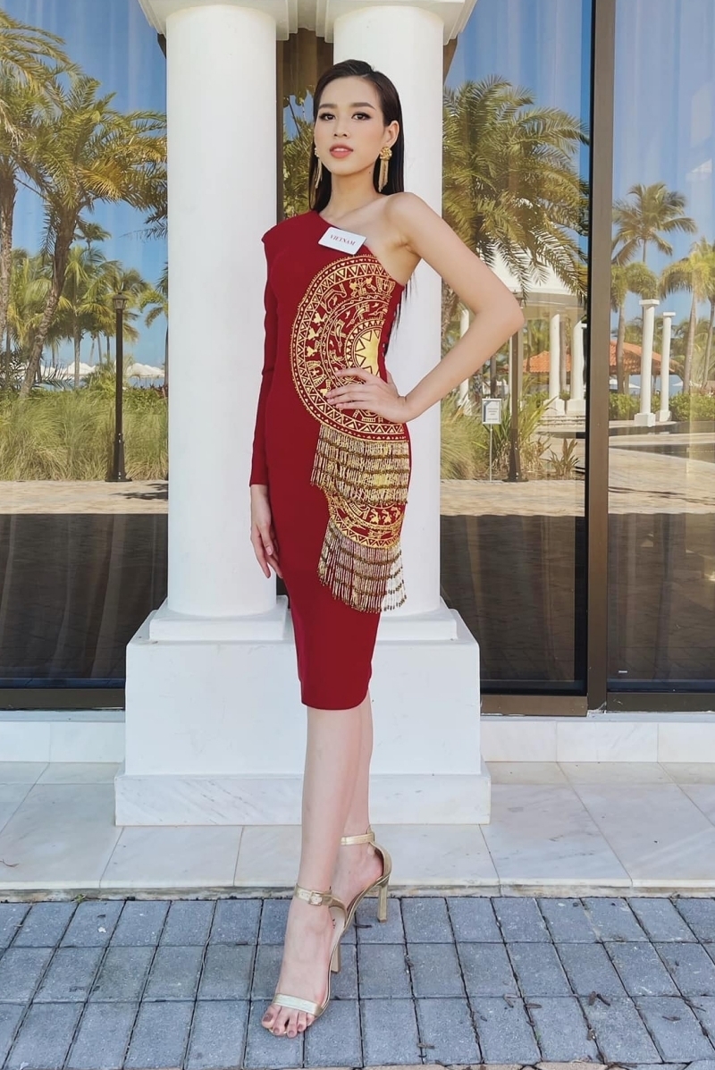 Hoa hậu Đỗ Thị Hà diện váy họa tiết trống đồng tại Miss World. Ảnh: Nhân vật cung cấp