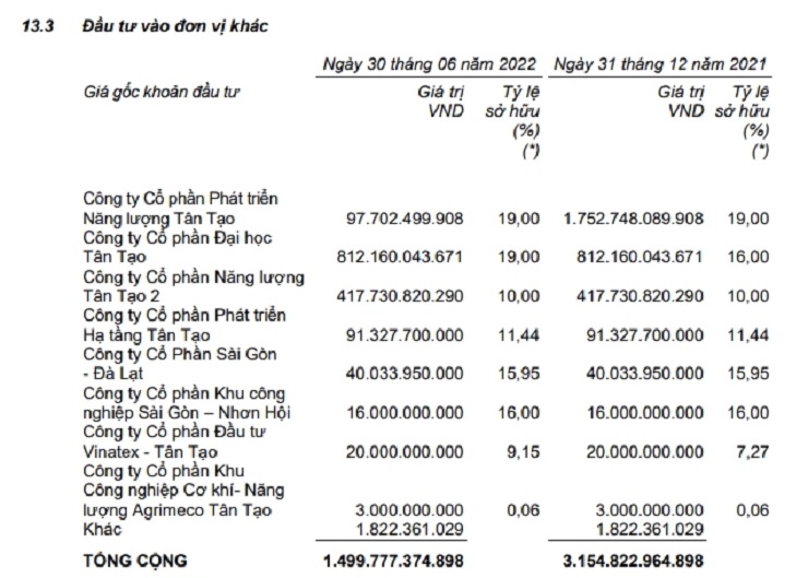Trong báo cáo soát xét năm 2021, đơn vị kiểm toán của ITA là Ernst&Young Việt Nam đã nêu ý kiến nhấn mạnh về khoản đầu tư vào Công ty cổ phần Đầu tư và Phát triển năng lượng Tân Tạo (TDEC) và Công ty cổ phần Năng lượng Tân Tạo 2 (TEC 2) với giá trị lần lượt 1.752,7 tỷ đồng và 417,7 tỷ đồng, cùng khoản phải thu 1.412,7 tỷ đồng với TEDC, TEC2 và TEC là các phát sinh liên quan đến quy trình phát triển Dự án Nhiệt điện Kiên Lương. Tổng giá trị các khoản mục này lên đến gần 3.583 tỷ đồng, tương đương hơn 1/4 tổng tài sản của ITA đến ngày 30/6/2021.