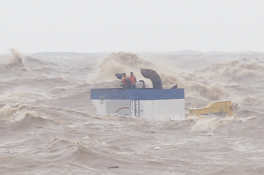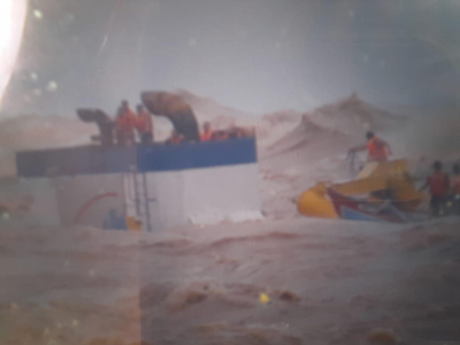 Ngoài khơi, đội cứu hộ vẫn tìm cách cứu những thuyền viên trên tàu chìm.
