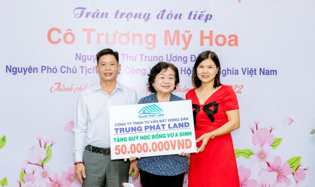 Ngày 30/7/2022 Đồng chí Trương Mỹ Hoa nguyên Phó Chủ tịch nước CHXHCN Việt Nam - Chủ tịch quỹ học bổng Vừng A Dính thăm và làm việc với Ban giám đốc Công ty Bất động sản Trung Phát Land tiếp đoàn có ông Lê Văn Giang giám đốc công ty là một trong những thành viên của câu lạc bộ "Vì Hoàng Sa - Trường Sa thân yêu" - Quỹ học bổng Vừ A Dính.