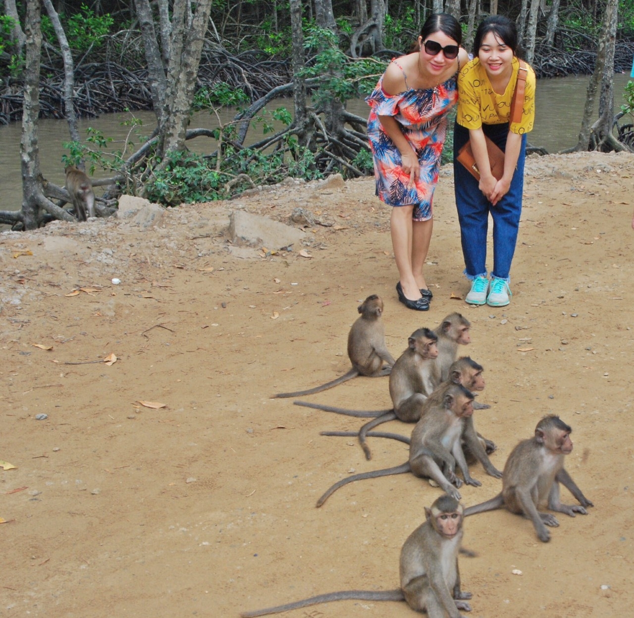 Đến đảo khỉ, bạn sẽ được ngắm nhìn lũ khỉ đáng yêu, thưởng thức không khí trong lành, mát mẻ của hệ sinh thái rừng nguyên sinh ngập mặn.