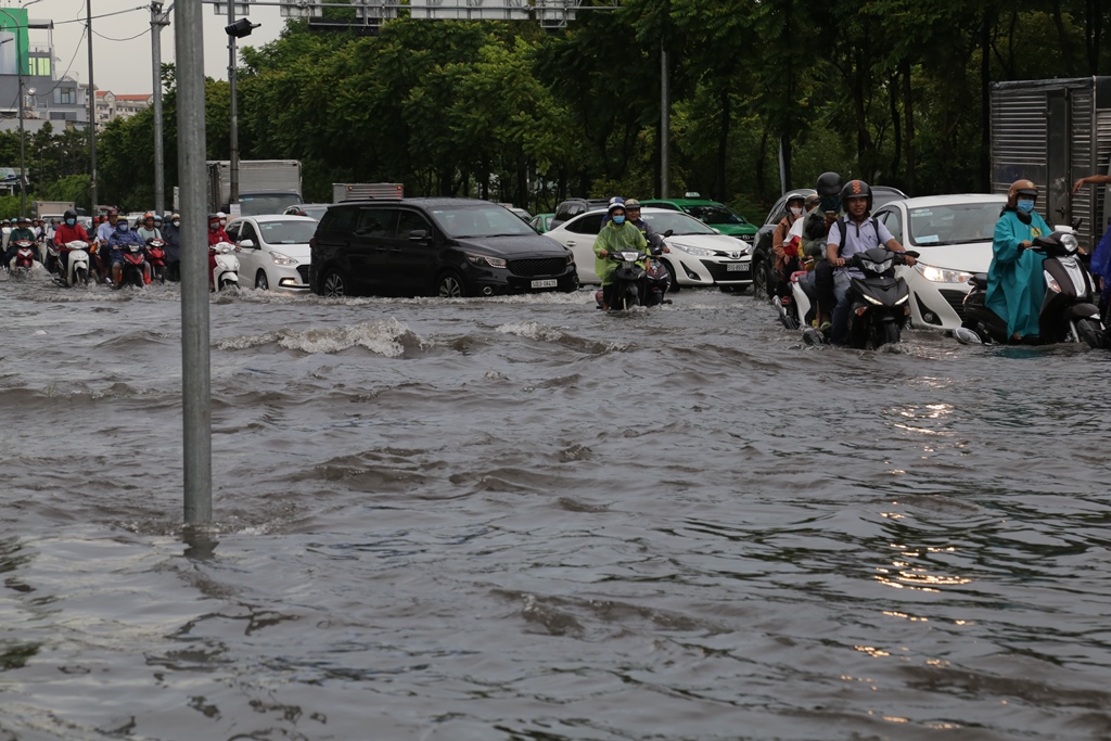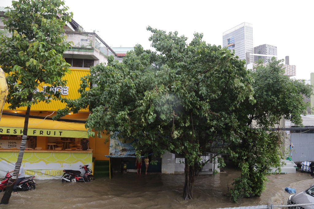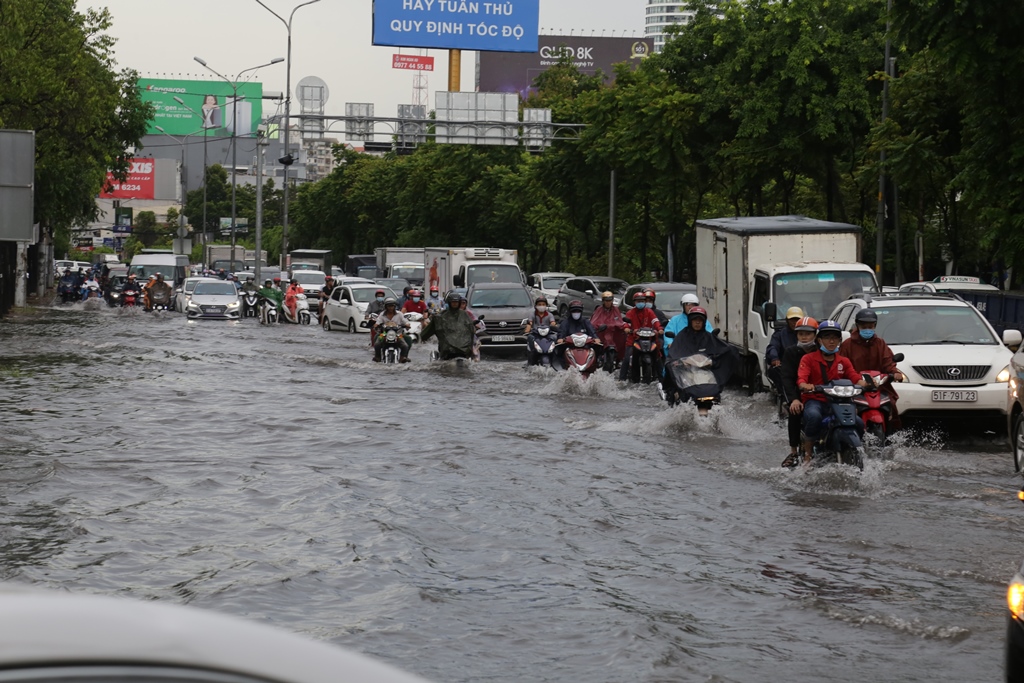 Chiều 8/7, cơn mưa lớn kéo dài hơn 30 phút đổ xuống TP.HCM khiến nhiều tuyến đường bị ngập. Trong đó, ngập nặng nhất là khu vực đường Nguyễn Hữu Cảnh (quận Bình Thạnh).