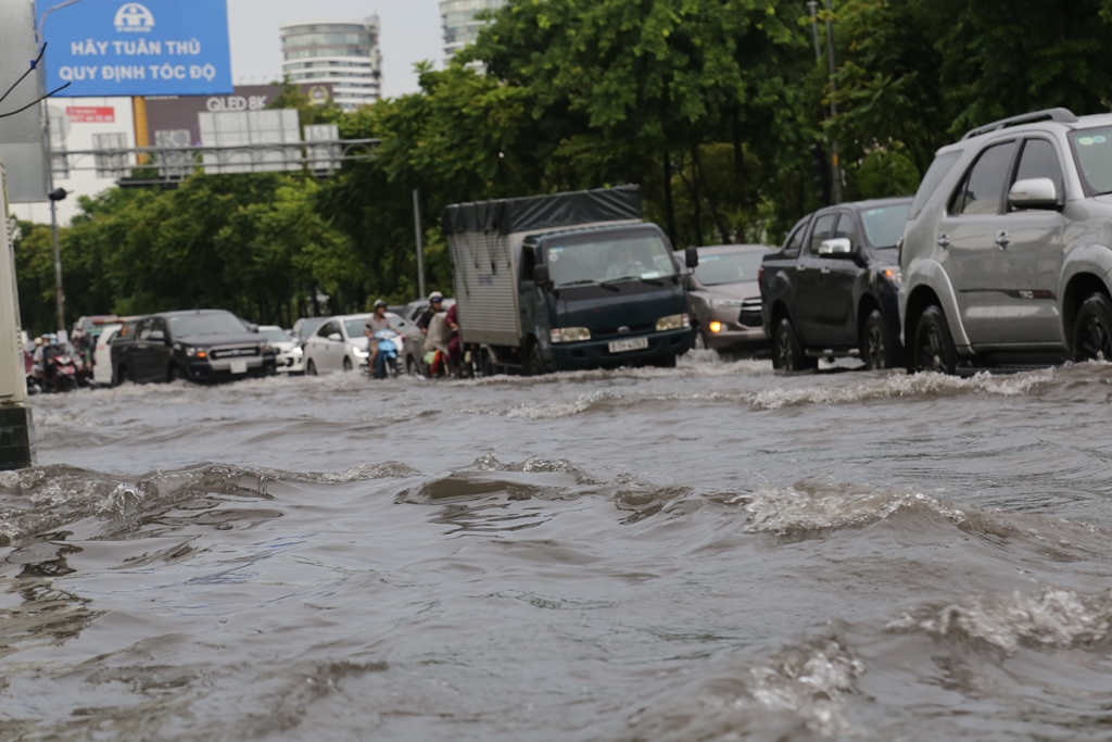 Kẹt xe xảy ra trên đường Nguyễn Hữu Cảnh. Ngoài ra, do ảnh hưởng của cơn mưa chiều nay, nhiều tuyến đường ở quận Bình Thạnh, Thủ Đức, quận 9…cũng bị ngập nặng.