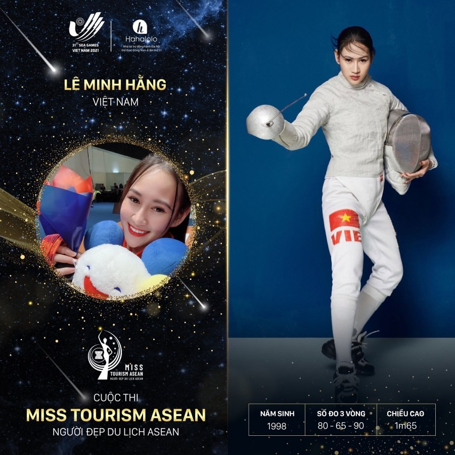 Cùng tham gia cuộc thi với Khánh Chi là một số người đẹp nổi bật trên mạng xã hội. Trong số đó có “mỹ nhân đấu kiếm” Lê Minh Hằng. Cô ghi dấu ấn khi là vận động viên giành huy chương bạc nội dung đồng đội môn Kiếm chém nữ tại Seagames 30. Bên cạnh sự nghiệp thể thao, người đẹp Hà thành còn lấn sân làm người mẫu ảnh. Nhan sắc của cô khiến dân mạng xuýt xoa.