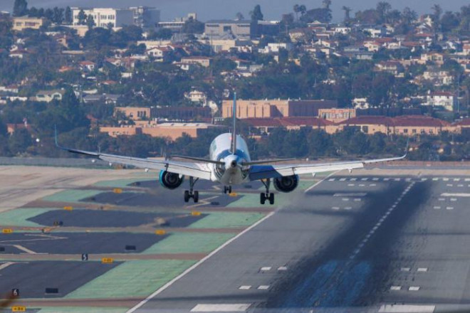 Một máy bay thương mại chuẩn bị hạ cánh xuống sân bay quốc tế San Diego. Ảnh - Reuters