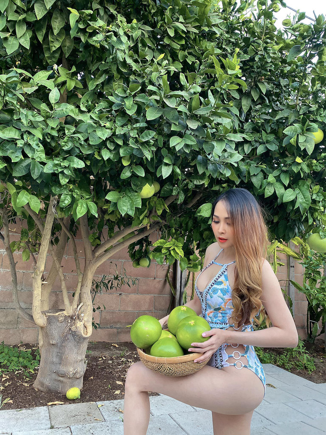 Diễn viên kiêm ca sĩ Minh Thư vừa gây chú ý khi chia sẻ loạt ảnh diện bikini gợi cảm để đi hái bưởi ngay trong vườn nhà tại bang California, Mỹ.