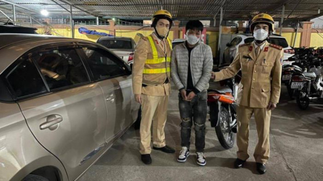Tổ công tác Đội CSGT đường bộ số 2 (Hà Nội) đưa đối tượng Nguyễn Tuấn Anh về Công an phường địa bàn thụ lý giải quyết theo qui định