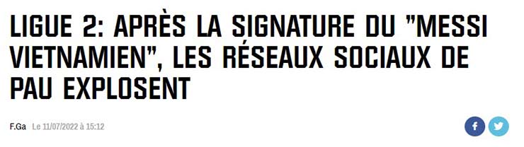 Bản tin của RMC Sport về Ligue 2 - "Sau sự gia nhập của 'Messi Việt Nam, mạng xã hội của Pau bùng nổ"