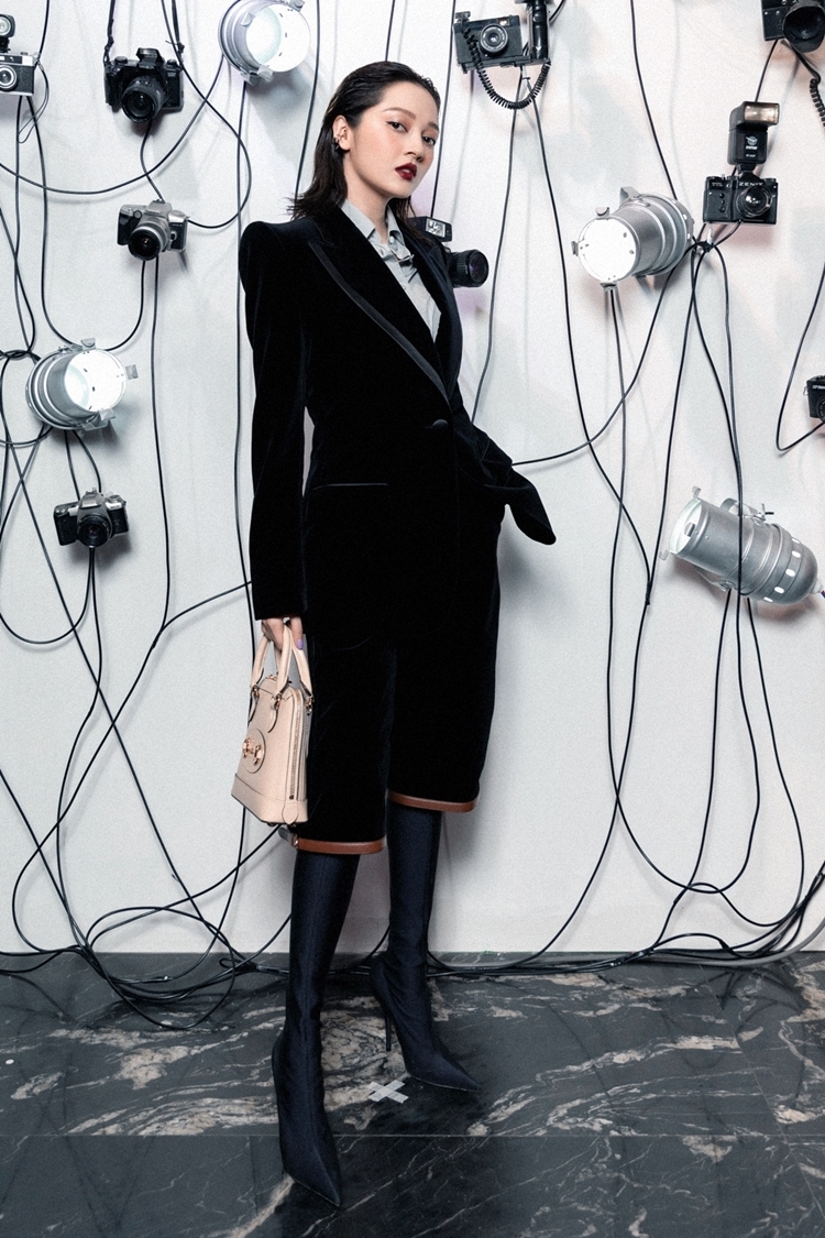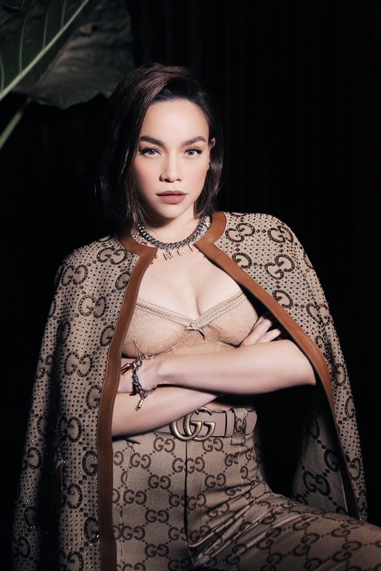 Ca sĩ Hồ Ngọc Hà mặc trang phục Gucci và Balenciaga kèm phụ kiện, trị giá 450 triệu đồng, ở tiệc tối 15/11.