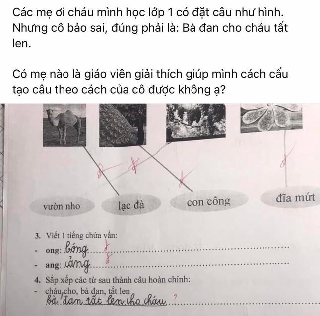 Mới đây, một vị phụ huynh đã đăng tải lên mạng xã hội bài tập tiếng Việt lớp 1 của con mình kèm theo thắc mắc với đáp án mà giáo viên đưa ra.