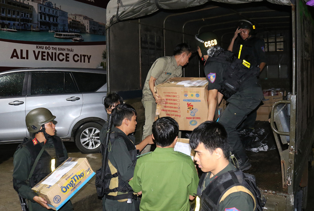 Cảnh sát thu giữ tang vật trong quá trình khám xét công ty Alibaba. Ảnh: Công an cung cấp