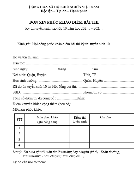 Theo Sở Giáo dục và Đào tạo Hà Nội, sau khi biết điểm các bài thi kỳ thi tuyển sinh lớp 10 trung học phổ thông năm học 2022-2023, nếu học sinh còn băn khoăn về điểm bài thi, có thể nộp đơn xin phúc khảo.