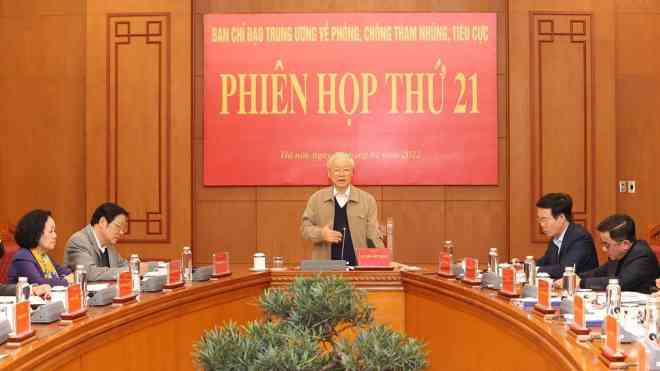 Thông báo kết quả phiên họp, Phó Trưởng Ban Nội chính Trung ương Nguyễn Thái Học cho biết, phiên họp thứ 21 được triển khai dưới sự chủ trì của Tổng Bí thư Nguyễn Phú Trọng, Trưởng Ban Chỉ đạo, để kiểm điểm, đánh giá kết quả hoạt động năm 2021 và cho ý kiến về Chương trình công tác năm 2022 của Ban Chỉ đạo.