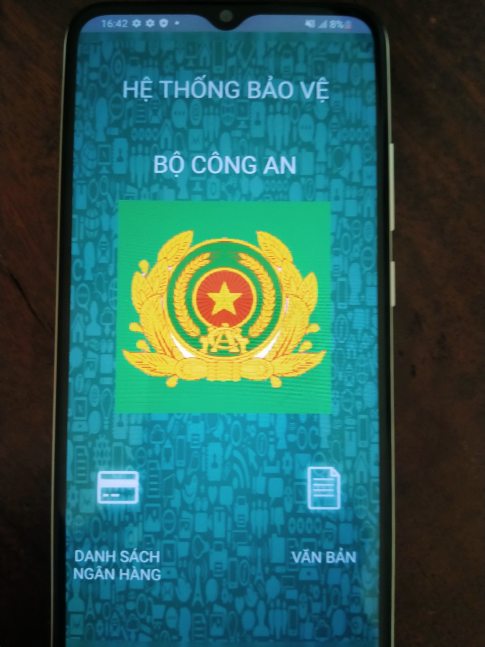 Phầm mềm giả mạo Bộ Công An ( Ảnh chụp màn hình do nạn nhân cung cấp)