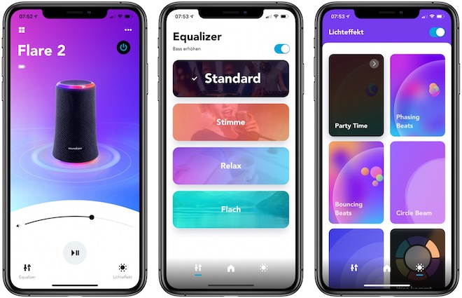 Là một tính năng tùy chỉnh đồng thời cũng góp phần tạo nên vẻ ngoài cuốn hút hơn cho Flare 2 chính là 6 chế độ ánh sáng thông qua hệ thống đèn LED. Người dùng có thể chọn chế độ màu yêu thích sao cho phù hợp với không gian thông qua ứng dụng Soundcore. Ánh sáng mờ ảo phát ra từ vành trên và dưới của loa có thể dùng làm đèn ngủ, giúp cho căn phòng thêm lãng mạn.
