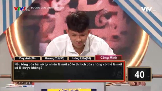 Trong khi 2 thí sinh nhanh tay hơn cho biết đáp án là 5 thì 2 thí sinh còn lại lần lượt có câu trả lời là 4 và 6. Đáp án được MC công bố là 5 và chỉ có 2 người giành được điểm.